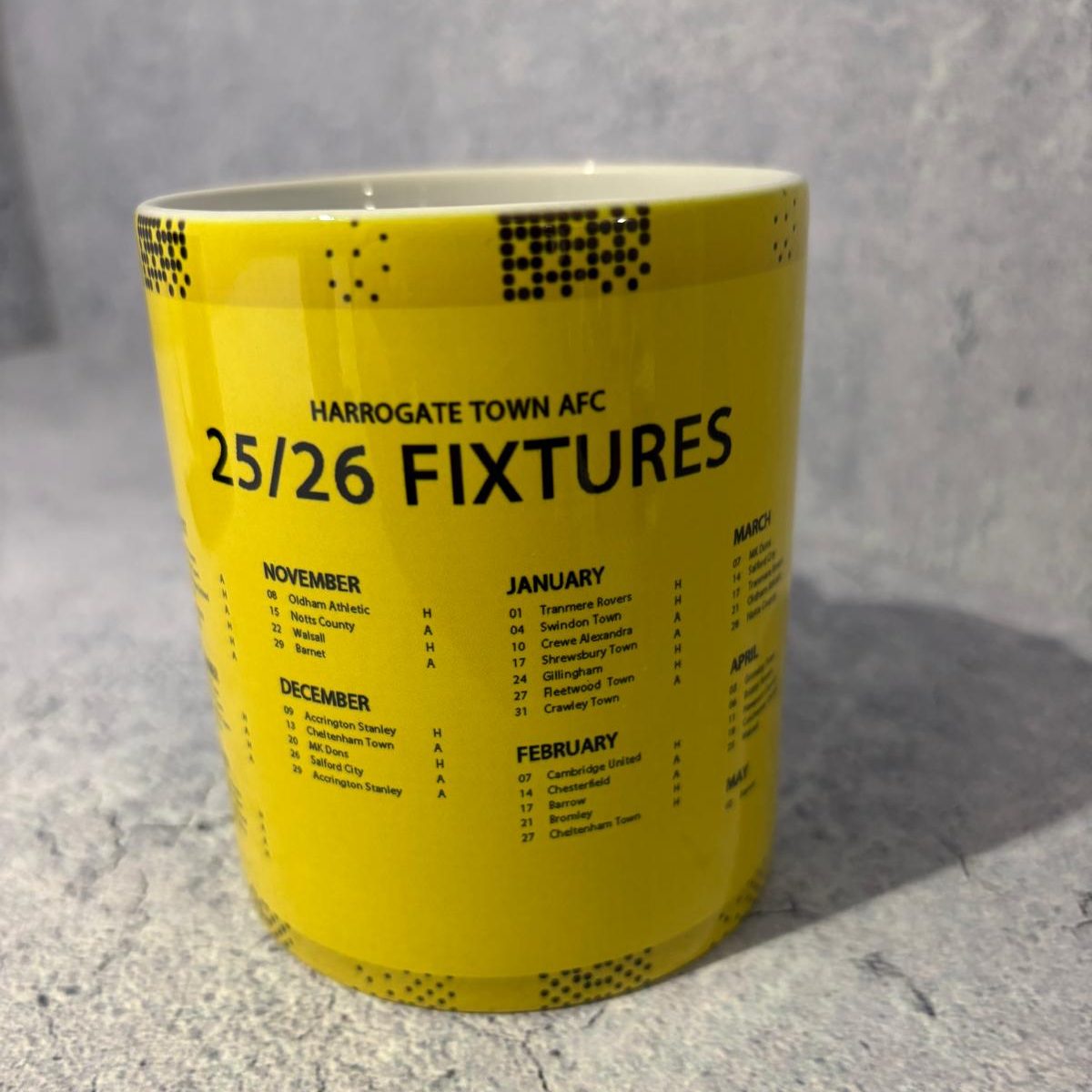 Brand new mug featuring our full 2025/26 League Two fixture list.