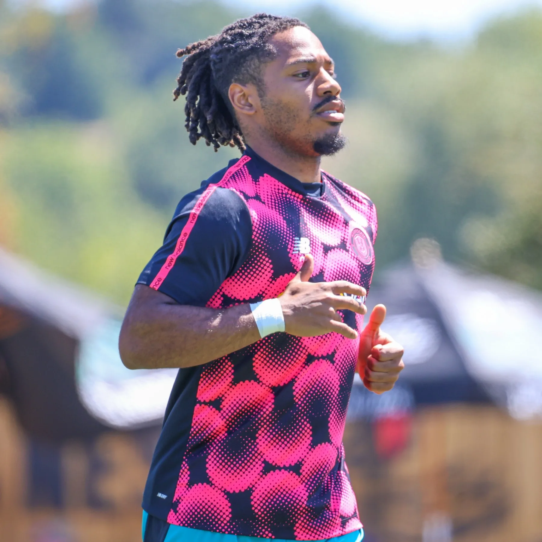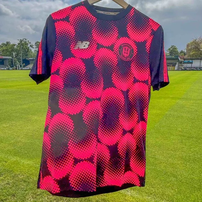 Our bold 2025/26 warm-up t-shirt from New Balance, featuring a pink and black design.