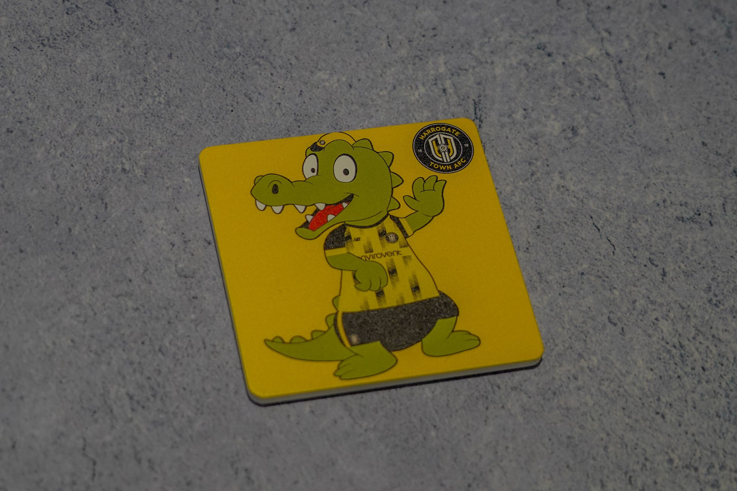 A drinks coaster featuring our Harrogate Town mascot Harry Gator!