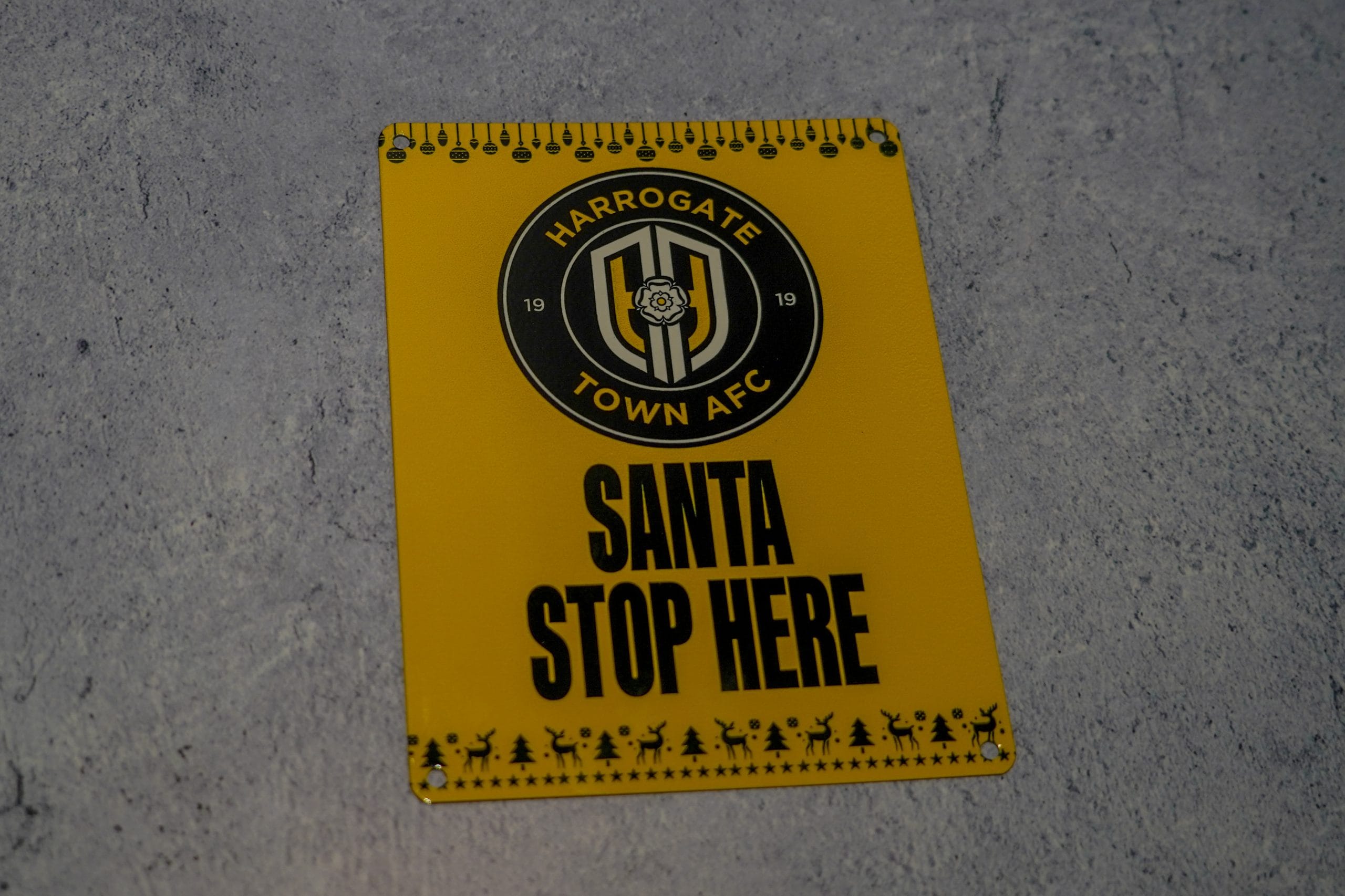 Make sure Santa doesn’t miss your house with a metal Harrogate Town Santa Stop Here sign!