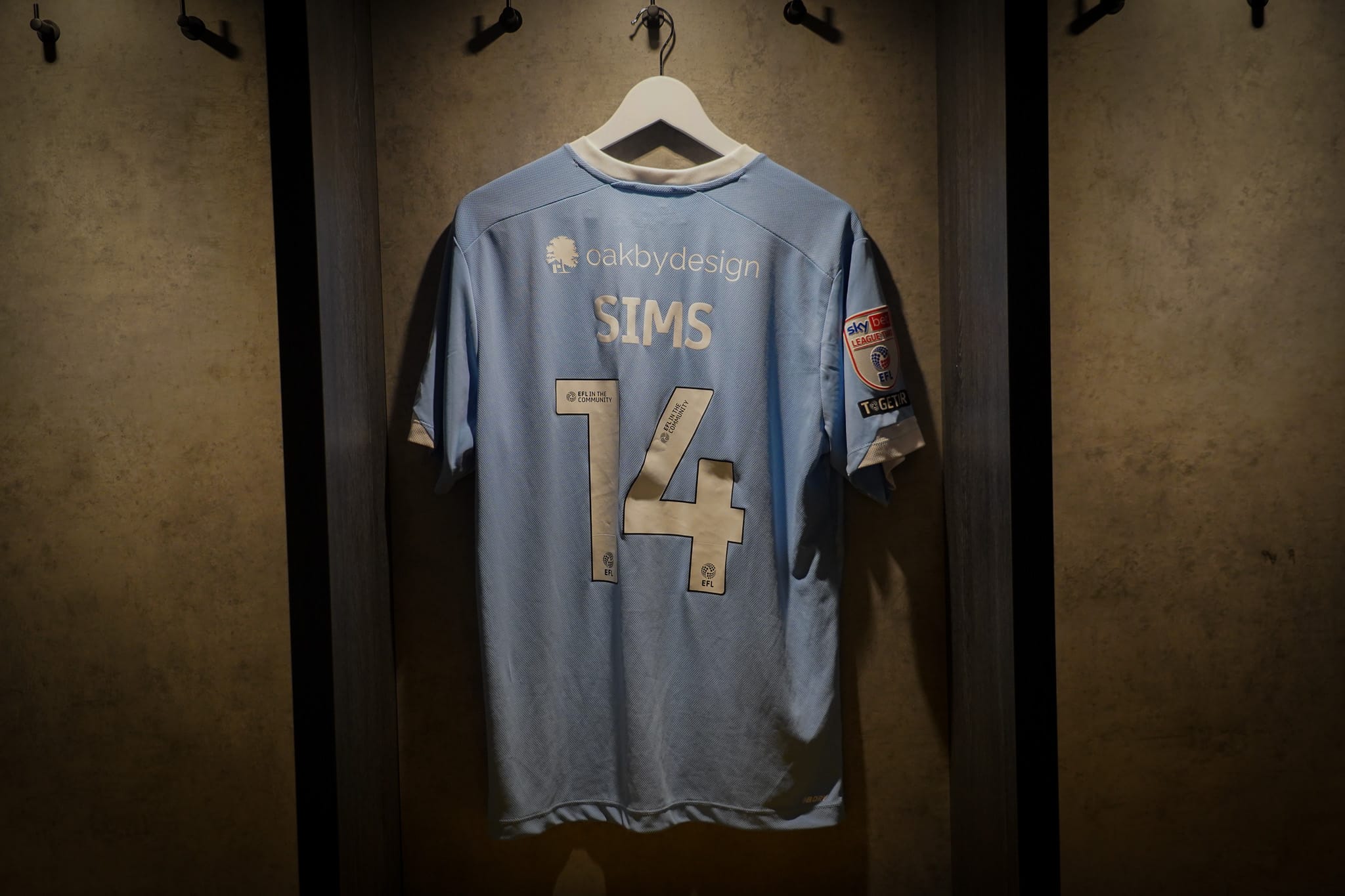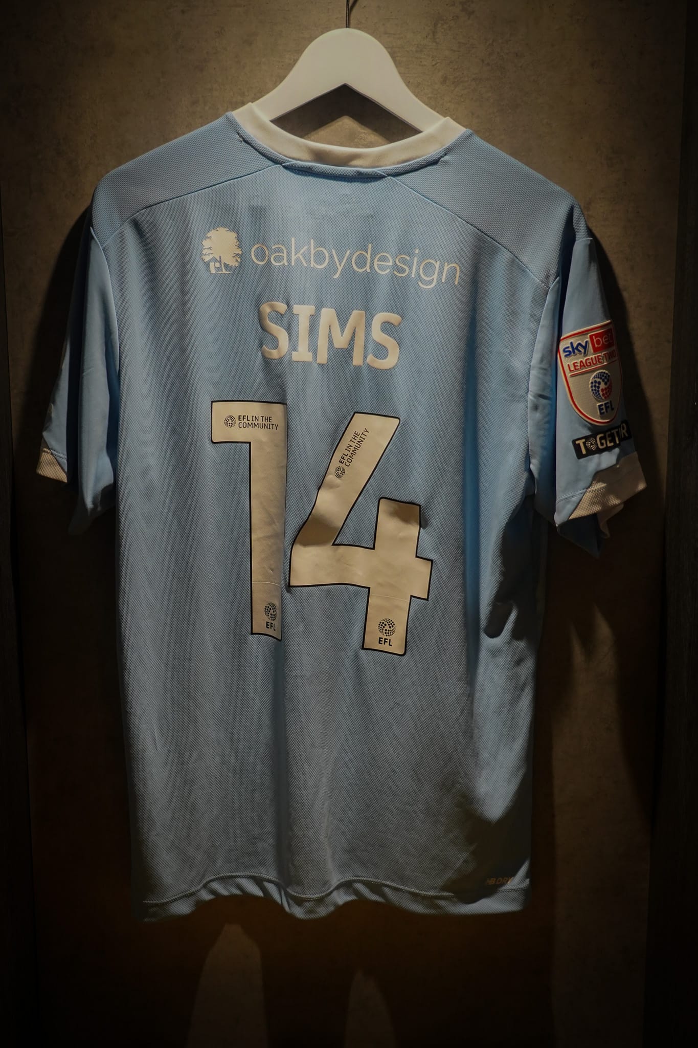 A match-issued Toby Sims 2024/25 home shirt.